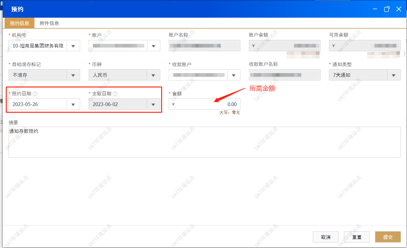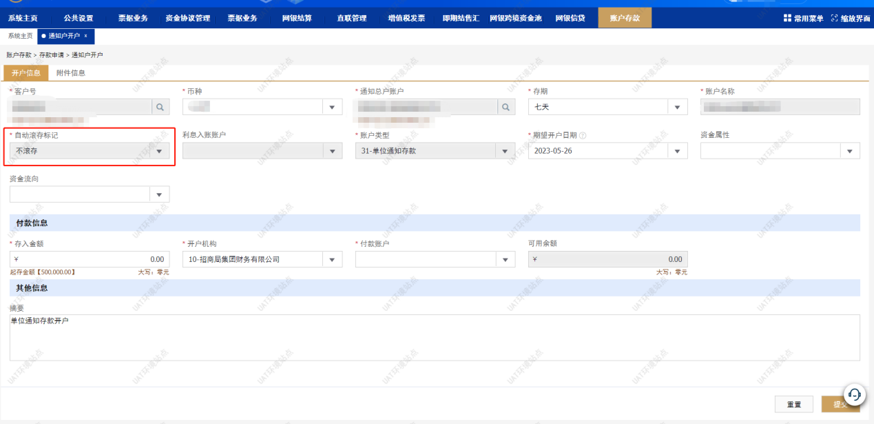 二是新开立的通知存款未来需要至少提前7天在招商局财务公司资金管理系统(以下简称FMS)中提交“通知存款预约”指令。