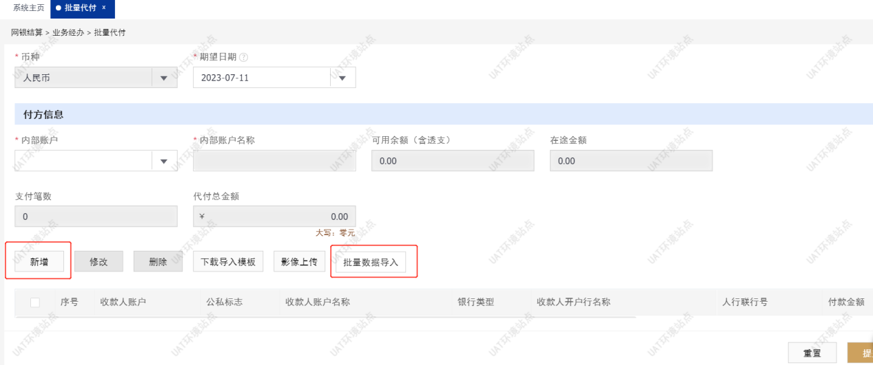 批量代付:成员单位可以通过模板批量导入代付信息