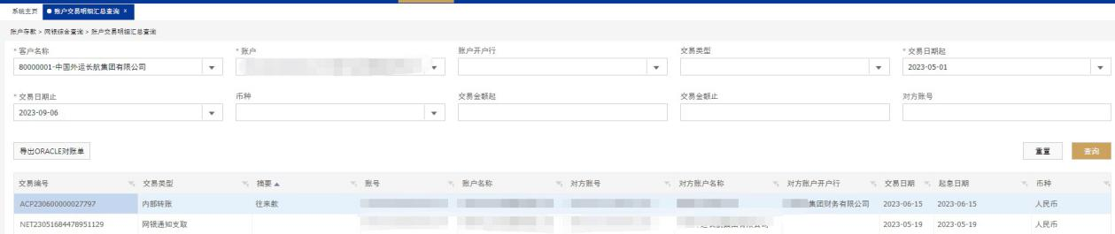 注:该模块正在持续优化中,现支持查询财务公司账户的所有交易明细,银行账户交易明细还需在直连管理——明细查询中查询,未来银行账户明细查询将整合至该模块,请大家多多支持(*^▽^*)