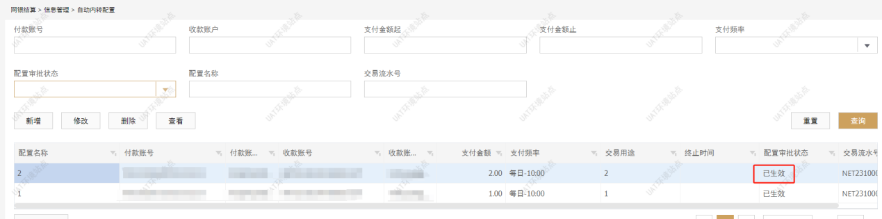 1、目前自动内转配置中仅会显示已生效和已到期的自动内转任务,被删除的自动内转任务不会在其中显示。