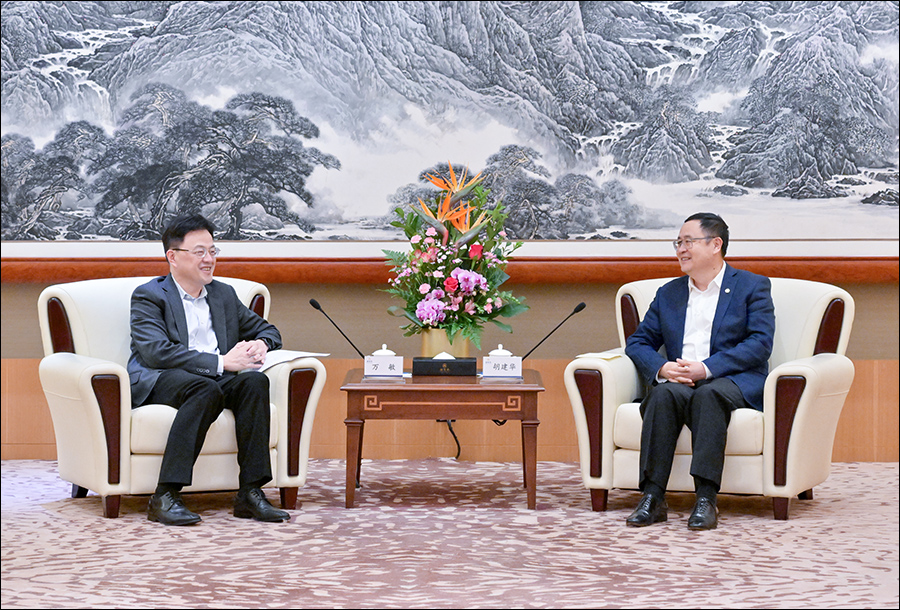 3月23日,招商局集团总经理胡建华在香港招商局大厦会见中远海运集团董事长万敏,双方就深化合作进行了深入交流。招商局集团副总经理冯波鸣参加会见。