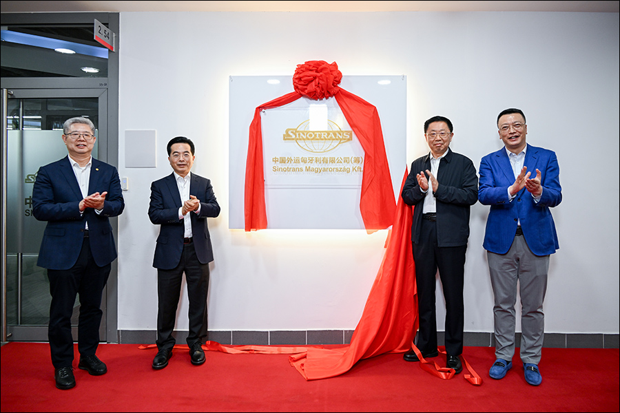 9月22日下午,缪建民在匈牙利布达佩斯调研了中欧商贸物流合作园区,听取园区介绍并为“中国外运匈牙利有限公司(筹)”揭牌。