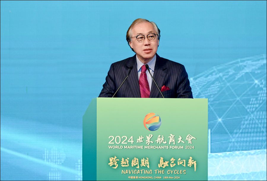缪建民作了题为《跨越大海 链接梦想 携手驶向全球航运光明未来》的主旨演讲。他指出,在各方共同参与下,世界航商大会已成为全球业界领袖和行业精英广泛交流的重要平台。今天我们赖以生存和发展的这片大海,正在发生深刻演变,充满机遇、挑战和希望。面对同一片“世界海”、同一个“航运梦”,期待行业各界跨越地域的分割,更好链接航运发展合作互助的梦想,形成更多的全球性航运解决方案;跨越时间的沟壑,更好链接航运数智绿色转型的梦想,协同完善航运数据治理国际规则,为航运业务模式升级重塑插上“智慧翅膀”;跨越产业的边界,更好链接航运企业融合创新的梦想,推动更多的航运国际组织、行业协会落户香港。