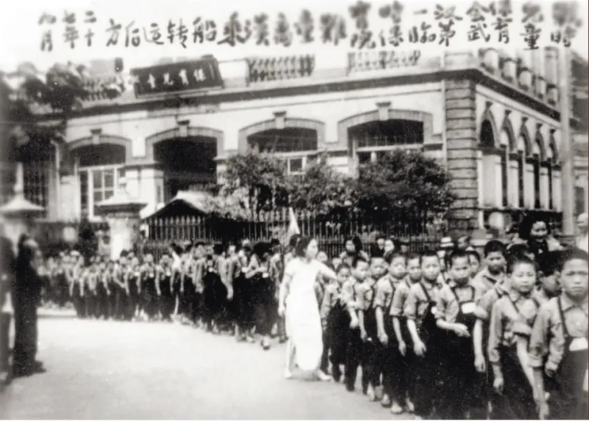 在宜昌档案馆,从一张黑白历史照片中可见,一群儿童在成人的引导下有序列成长队。他们是武汉第一临时保育院(简称保育院)的学生,当时正离院准备乘船转移至宜昌。