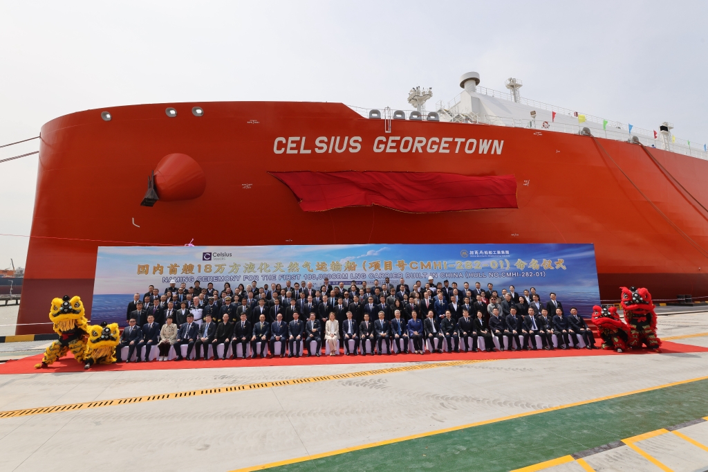 4月8日,招商船舶海门基地举行我国自主设计建造的首艘18万立方米液化天然气(LNG)运输船命名活动,招商局集团董事长缪建民,南通市委书记吴新明、副市长李玲,Celsius集团创始人兼主席Jeppe Jensen,ABS首席运营官兼运营执行副总裁Paul Karam,GTT中国区总经理Adnan Ezzarhouni,招商局集团总经理助理、董事会秘书,集团办公室主任张军立等出席活动。