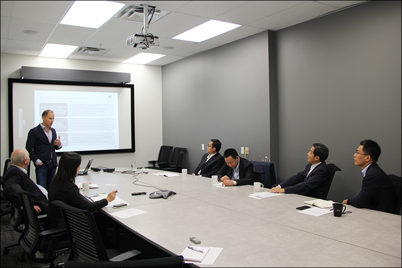CMG owns a life-long investing chain from angel investment to private equity, which has the willingness to invest technological and innovative fields. CMG can forge a cooperative mechanism, as it shares great advantages in technology, resources and products. Sophie Chen, market director of Invest Ottawa, shows the advantages of nurturing high-technology and innovative industries in Ottawa. Michael Darch, President of Consider Canada City Alliance, draws a picture of investing environment of Canada. David Adderley, partner of Celtic House, shares many successful VC examples in Canada. Mr. Li Jianhong appreciates the investing concepts and advantages of Ottawa. China Merchants Group is willing to impetus practical cooperation with those companies mentioned about. Later, Chairman Li pays a field visit to Invest Ottawa to grasp information about its business incubator. Hong Xiaoyuan, Assistant President of CMG, and Li Yadong, General Manager of General Office of CMG, and etc. accompanied.