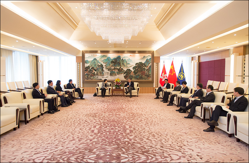 On March 17, 2017 local time, China Merchants Group President Li Xiaopeng met in Hong Kong with Wen Dongfen, General Accountant of CNOOC, exchanging opinions about business development and potential cooperations. CMG Assistant President Hong Xiaoyuan attended the meeting.
