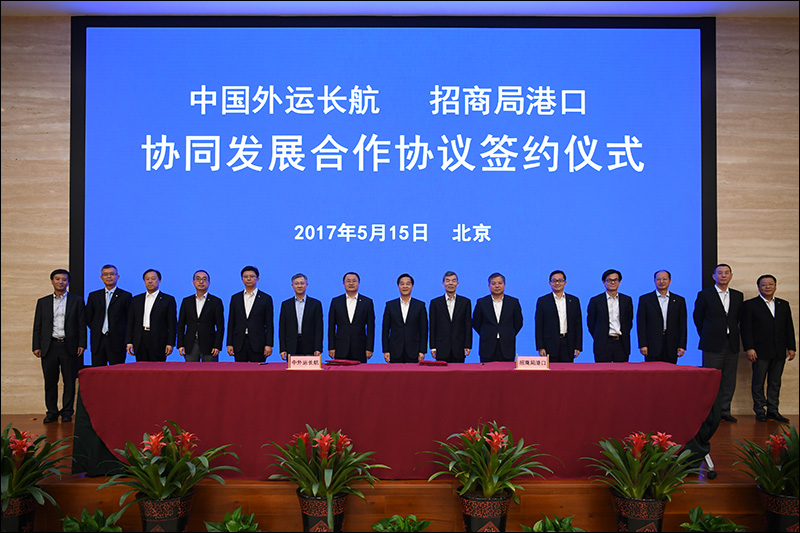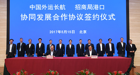 On May 15, 2017 local time, Sinotrans&CSC signed Co-operation Agreement about Synergy Development with China Merchants Port. CMG Chairman Li Jianhong, Vice Chairman Zhao Huxiang, Executive Vice President Hu Jianhua, Wang Hong and Assistant President Chu Zongsheng attended the ceremony.