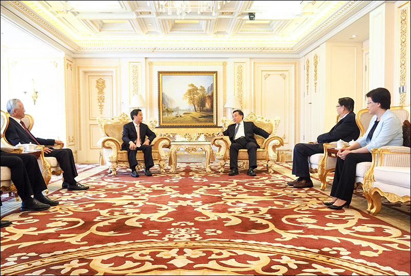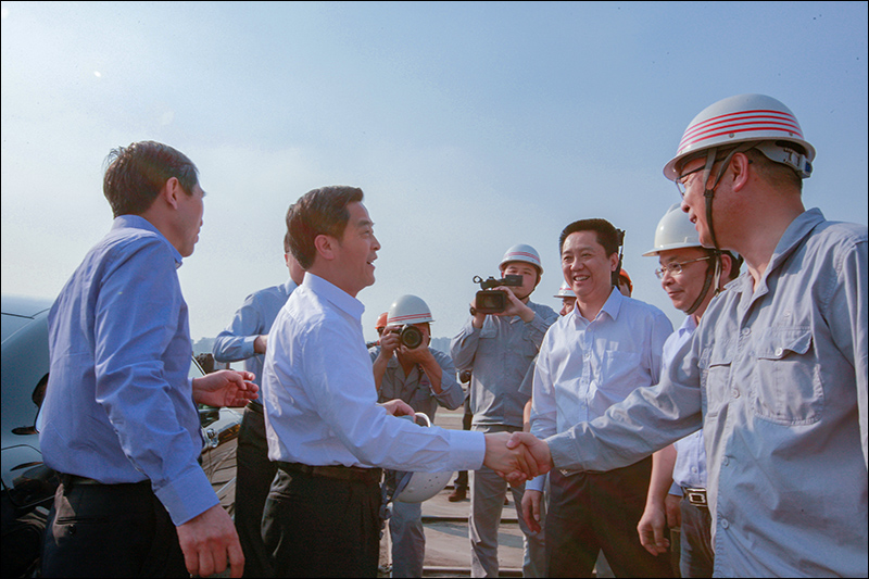 On May 20, Li Jianhong met and exchanged opinions with Li Qiang, Secretary of the Jiangsu Provincial CPC Committee, Wu Zhenglong,Secretary of the Nanjing Municipal CPC Committee through 2017 Jiangsu Development Summit. During the visit, Li went to China Merchants Bank(Nanjing Branch) and Sinotrans&CSC Jinling Shipyard, with the encouragement to CMB Nanjing and Jinling Shipyard staffs to strive to innovate and transform with the quality services. He held friendly talks with Lu Zhipeng, Secretary of the Nantong CPC Committee, and Han Liming, Mayor of Nantong on the topics of maritime engineering, industrial park development, financial services.