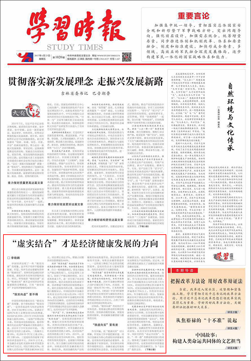 The theme of Provincial and Ministerial Level Training Program is to provide them access to systematically grasping the essence of PRC President Xi Jinping's keynote speech spirits, new insights and mechanism under new normal time as well as supply-chain reform. When interviewed by Study Times, he systematically analyzed how to effectively integrate real economy and fictitious economy so as to invigorate and remain the engine of economy. "I would like to spare no effort to making full use of fruits gained in the program on the corporate governance." said Li Xiaopeng after the program concluded.