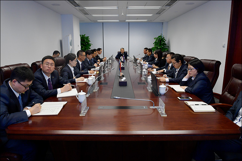 Li Xiaopeng exchanges ideas with staffs in Loan Strategy and Director, Secondary Capital Pool, Big Data in Clearing. He congratulates the internal reorganization and thumb-ups business performances within one year. Li also puts requirements for corporate future development in terms of integrated function setting, capital concentration, distinctive business development, big data application and etc..