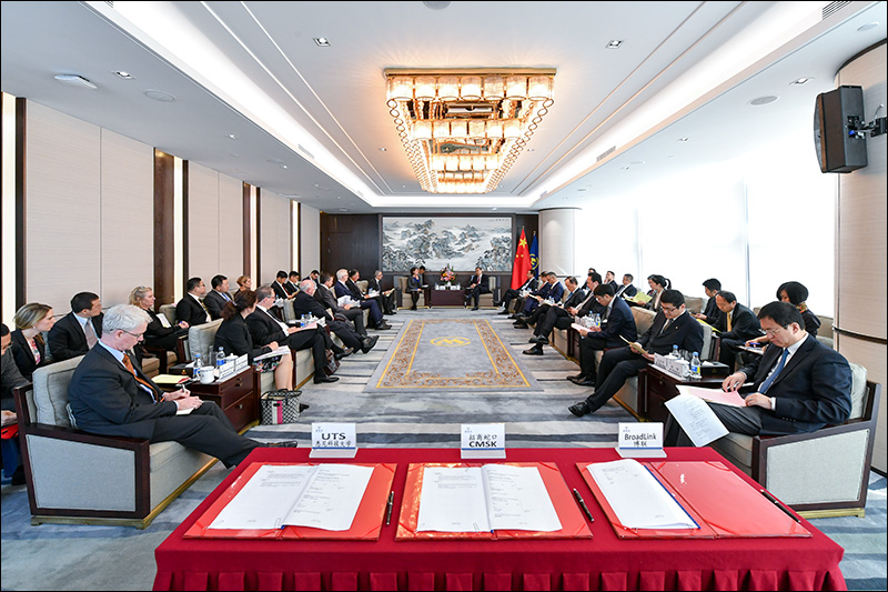 On December 4, 2017 local time, China Merchants Group(CMG) President Li Xiaopeng meets in Shenzhen with The Honourable Gladys Berejiklian MP, Premier of New South Wales, witnessing MOU signing among CMSK, UTS and BroadLink and unveiling ceremony for Data Innovation Incubator. CMG Director Hong Xiaoyuan attends the meeting and preside the ceremonies.