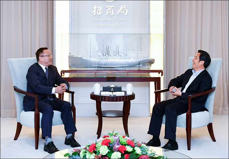 On March 21, China Merchants Group(CMG) Chairman Li Jianhong meets with Chen Bo President of China International United Petroleum & Chemicals(UNIPEC), exchanging opinions about overseas cooperations and expansions. CMG Executive Vice President Wang Hong and Director Su Xingang attend the meeting.