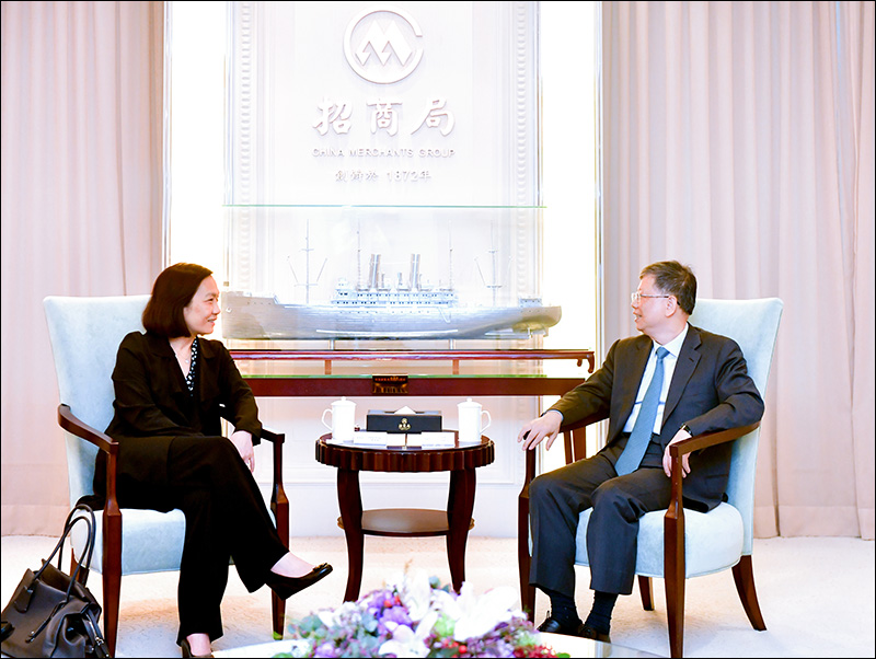 On April 12, 2018 local time, China Merchants Group President Fu Gangfeng meets with Helen Wong, CEO of Greater China of HSBC, discussing topics on The Belt and Road Initiative, capital market, exchange rate risks. CMG Deputy CFO Zhou Song attends the meeting.
