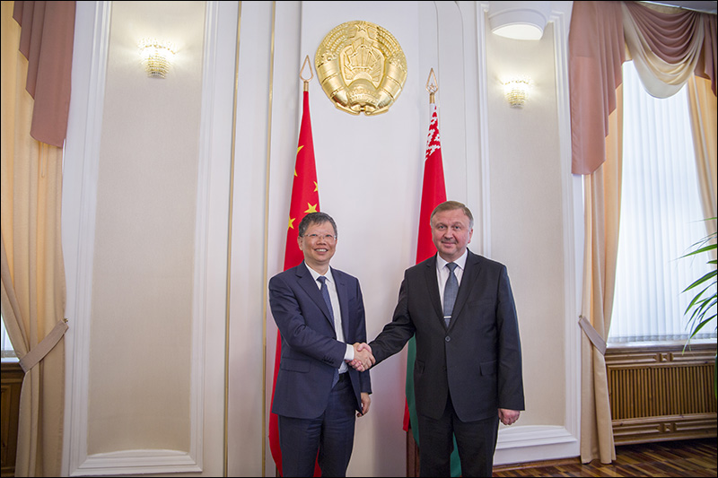 On May 28, 2018 Minsk time, China Merchants Group (CMG) President Fu Gangfeng meets in Minsk with Prime Minister of the Republic of Belarus Andrei Kobyakov, exchange ideas about further cooperations, where CMG Executive Vice President Wang Cuijun and CMG Chief Representative in Central Asia and Baltic Sea Region, attend the meeting.