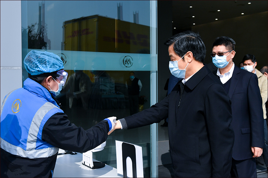 On February 19, Group Chairman Li Jianhong paid a site visit to China Merchants Logistics Centre in Tsing Yi, Hong Kong, for an inspection on the anti-epidemic work as well as extending appreciation to employees. Executive Vice President Wang Hong accompanied the inspection.