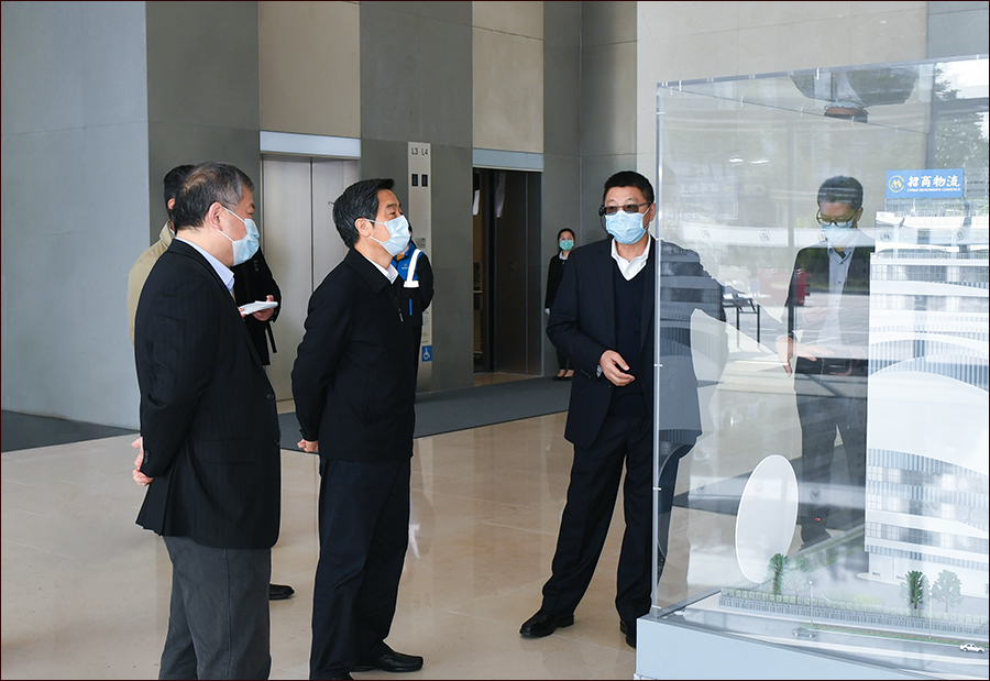 Li Jianhong conducted thorough inspections on the dimensions and functions of each floor, the operation of self-run and leased warehouses and the Centre's overall revenue situation. He also visited the office areas to inspect office facilities and extended appreciation to those staff at work. Li Jianhong required that China Merchants Logistics Centre should continue to attach great importance to epidemic prevention and control, ensure that work and production resumption is smooth and steady, and continue to contribute to the development of Hong Kong's logistics industry. Head of China Merchants Shipping and Enterprises Company Limited, the Centre's operating company, reported that the Centre's operation had been stable, dry warehouses and frozen warehouses were fully leased, and clients including DHL and Tesla have mostly resumed work without confirmed cases.
