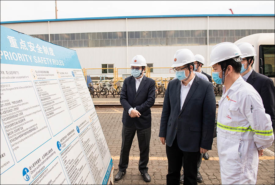 Hu Jianhua heard a report given by Hu Xianfu, General Manager of China Merchants Industry, on the health and safety of employees during the outbreak, epidemic prevention measures, the status of work and production resumption of various production units, and production safety. He also paid a site visit to the No.1 berth to inspect the vessel that was under repair. Full recognition was given by him to staff at all levels for the efforts made for anti-epidemic. He said that, in the face of the dual pressure of epidemic prevention and resumption of production, it was not an easy task for China Merchants Industry to maintain zero cases in the context of widely distributed bases and more than 20,000 staff. He stressed that China Merchants Industry should consolidate the achievements at this stage, continue to maintain excellent work performance, and unify the thoughts and strengthen the confidence to resolutely win the blocking battle of epidemic prevention and control, the positional battle of work and production resumption and the uphill battle of annual goals.