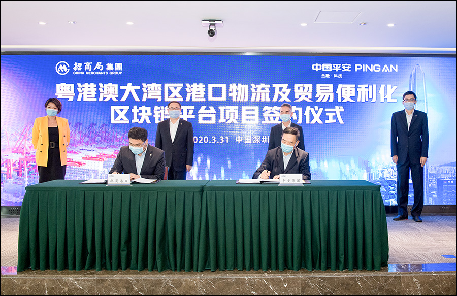 On March 31, China Merchants Port and Ping An OneConnect held the signing ceremony of "The Guangdong-Hong Kong-Macao Greater Bay Area Port Logistics and Trade Facilitation Blockchain Platform" project at the China Merchants Port Building. Group President Hu Jianhua, Chen Xiaoying, Commissioner of Shenzhen Customs, and Chen Xinying, Co-CEO of Ping An Group, attended the event and witnessed the signing. Huang Chuanjing, Deputy General Manager and Chief Digital Officer of China Merchants Port, and Ye Wangchun, Chairman and CEO of Ping An OneConnect, signed the agreement on behalf of both parties.