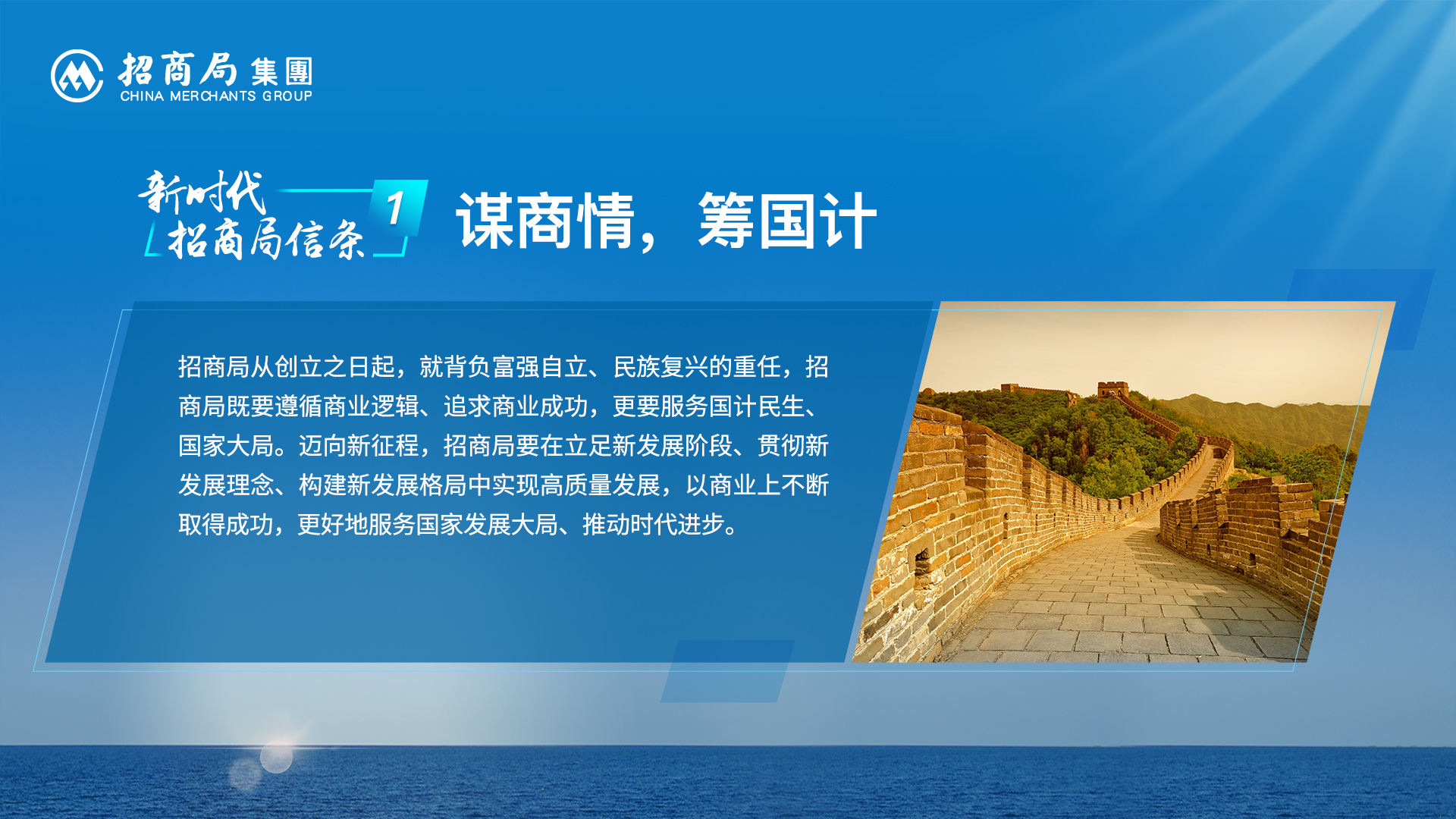 招商局创立于1872年,是中国第一家民族工商企业,开启了中国企业史的新纪元。当时的中国积贫积弱,饱受侵略,面临千年未有之大变局,招商局生于忧患,注定不仅要“在商言商”,为中国航运业乃至中国经济开辟新路,更要“在商言政”,为国家富强、民族复兴披荆斩棘、奋楫扬帆。招商局是诞生于千年变局下的百年大计,既“谋商情”,又“筹国计”,从一开始就已深深融入招商血脉,成为招商局历久不变的企业信条。