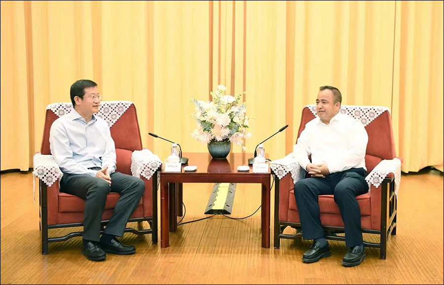 6月29日,集团副总经理邓仁杰在新疆乌鲁木齐拜会了新疆维吾尔自治区党委副书记、自治区主席艾尔肯·吐尼亚孜。双方就产业援疆、定点帮扶等方面进行交流。自治区党委常委、自治区常务副主席陈伟俊参加会见。