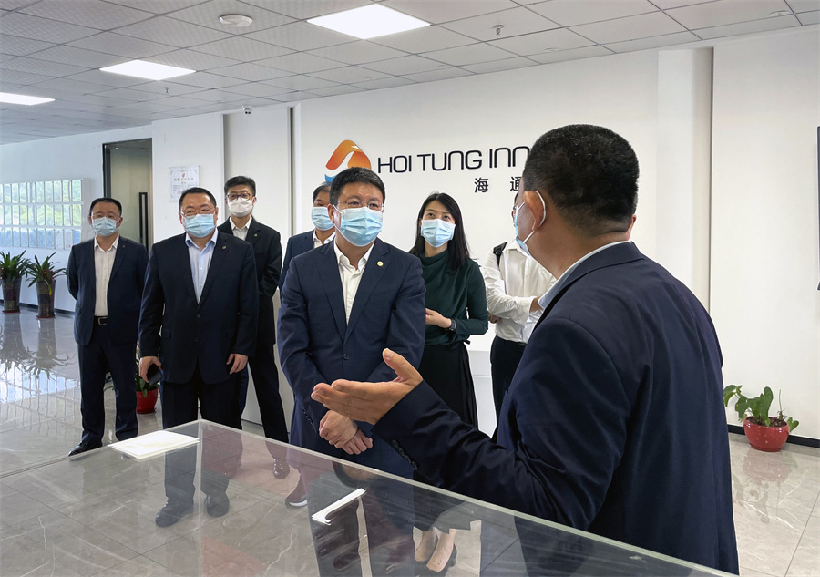 周松还实地调研了海通科创厂区,参观产品展厅和系统智能监控平台,详细询问创新技术开发和项目落地等情况,并就港口新能源设备业务等进行了深入交流。