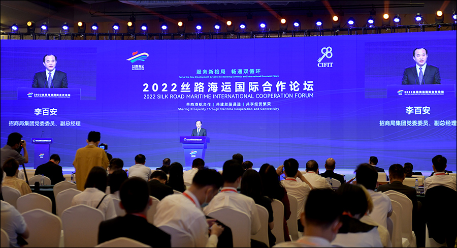 参会期间,李百安应邀参加了2022年度“丝路海运”国际合作论坛,并作题为《招商局集团高质量践行“服务新格局,畅通双循环”的思考和举措》的主题演讲。