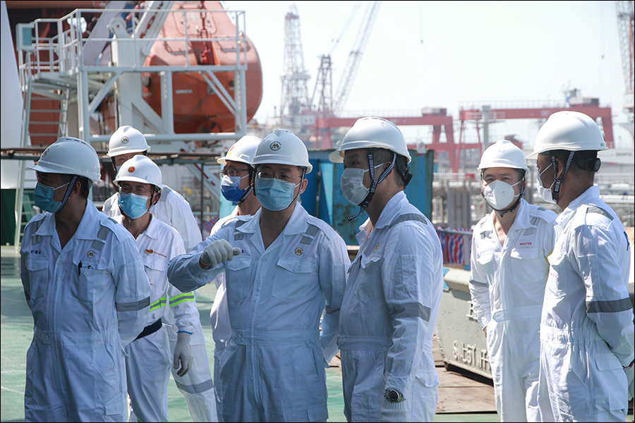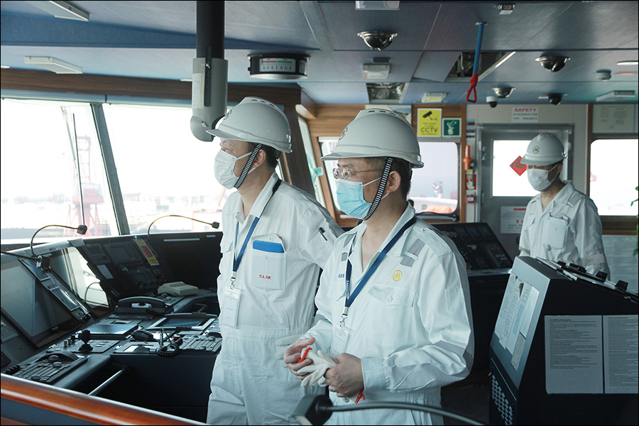 集团安全环保监督管理部部长赵耀铭,招商轮船董事长谢春林,招商轮船、招商工业有关负责人陪同检查慰问。(招商轮船 供稿)