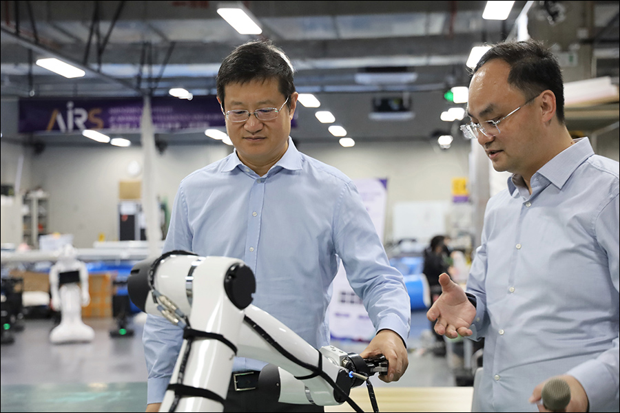 调研期间,邓仁杰参观了香港中文大学(深圳)与深圳市政府联建的诺奖科学家实验室——瓦谢尔计算生物研究院和科比尔卡创新药物开发研究院,以及深圳市十大基础研究机构——深圳市大数据研究院和深圳市人工智能与机器人研究院,了解相关领域最新技术发展趋势和技术成果应用情况。