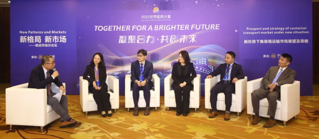航运市场分论坛由油轮运输业务、散货运输业务、集装箱运输业务、航运法律和保险、行业社会责任等五个主题组成。聚焦航运业发展的诸多变化与挑战,面对新的发展格局、更广阔的服务市场,从传统航运服务向全程物流服务转型升级等多个角度,围绕市场趋势展望、航运产业链转型与升级、绿色节能与智能航运等焦点,畅谈真知灼见,促进行业向可持续高质量发展的道路前进,共同为构建更加公平、更有效率、更具韧性、更为绿色的全球航运新生态作出努力。与会嘉宾就船舶低碳化与资本市场价值评估、航运法律和保险、双碳战略助力航运企业高质量发展等议题展开热烈讨论。大家一致认为,在百年变局中谋求发展,需要全球航商“凝聚合力、共创未来”,在全球航运业未来的航程中,乘风御浪、持续远航。