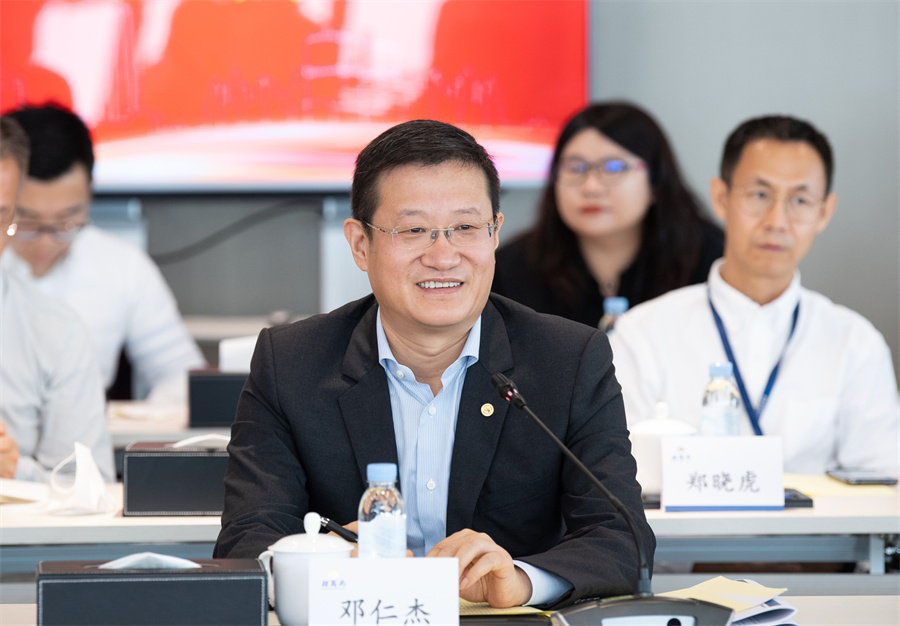 邓仁杰欢迎培训班学员们来到招商局参访交流。邓仁杰表示,招商局是百年央企、综合央企、驻港央企,业务多元,横跨实业与金融。招商局集团认真学习宣传贯彻党的二十大精神,落实“疫情要防住、经济要稳住、发展要安全”的工作要求,实现了稳中向好的发展态势。邓仁杰介绍了招商局在港口、航运、金融等业务板块的实践经验,分享了招商局在推动科技创新、促进产业升级等方面的举措。邓仁杰表示,期待与兄弟央企加强在各方面的协同合作,发挥各自特点,实现优势互补、共赢发展。