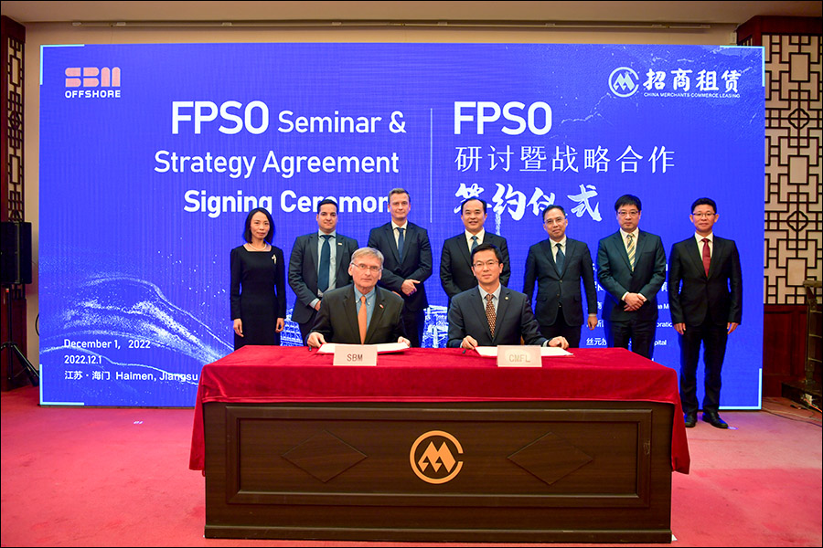 12月1日,集团副总经理、招商工业董事长李百安出席招商租赁与荷兰SBM集团战略合作签约仪式暨FPSO研讨会。SBM集团首席运营官ØivindTangen、战略发展执行副总裁Bernard van Leggelo、全球业务总监Eduardo Chamusca及中国区总经理覃荣参加签约仪式暨研讨会。