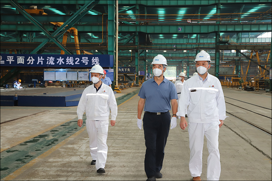 调研中,吴献东深入生产一线,着重查看了南京金陵船体加工生产流水线、VOC处理装置以及船坞在建7000车位滚装船,听取了企业近年来改革调整、转型升级、生产经营和发展规划等情况的工作汇报。在扬州金陵,吴献东前往船坞、绿色能源装备制造车间,并登上交付船舶实地了解了船厂建设、产能负荷、智能制造和重点在建项目情况。