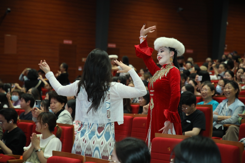 活动尾声,演员们邀请在场观众共同跳起麦西来甫(维吾尔语中意为“聚会”),将现场气氛推向高潮。热烈的互动不仅拉近了新疆与北京的距离,更展现各民族交往交流交融的生动画面。