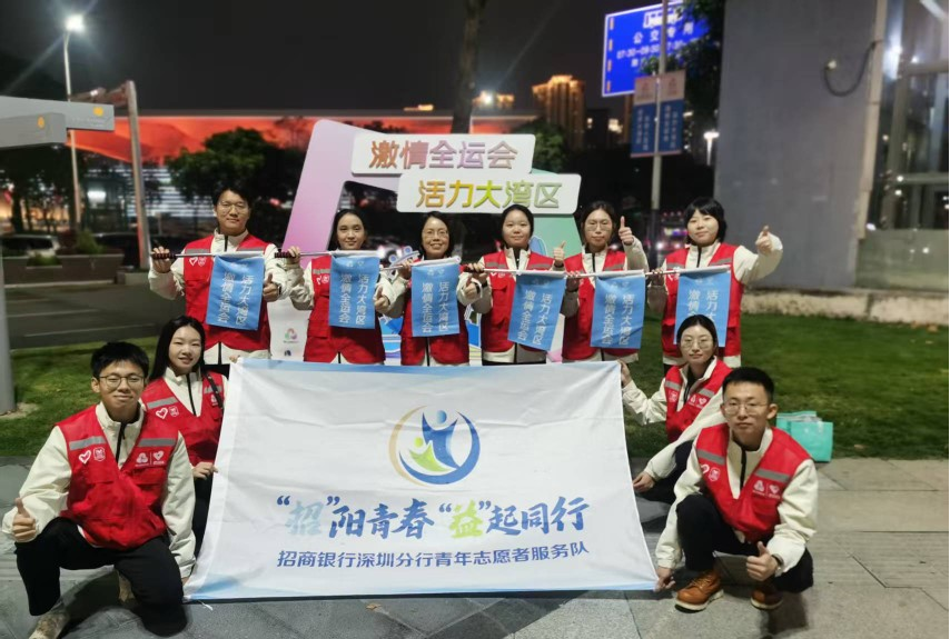 招商银行深圳分行青年志愿者服务队为全运会闭幕式筑牢“安全防线”。分行团委主动对接赛事志愿服务需求,精选11名青年骨干组成专项志愿服务队,奔赴闭幕式重点保障片区,开展交通指引、文明劝导、秩序维护、应急协助等工作。志愿者们以饱满的热情、专业的素养和踏实的作风,全力护航闭幕式,凭借出色表现受到共青团深圳市宝安区委员会的致信感谢。