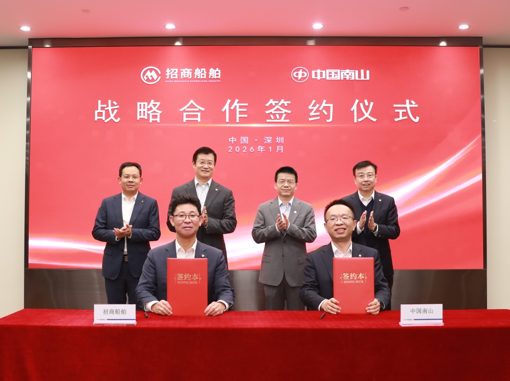 1月15日下午,招商船舶与中国南山在深圳赤湾总部大厦签署战略合作协议,进一步巩固深化双方协同合作关系。集团副总经理邓仁杰、蒋铁峰出席并见证签约。
