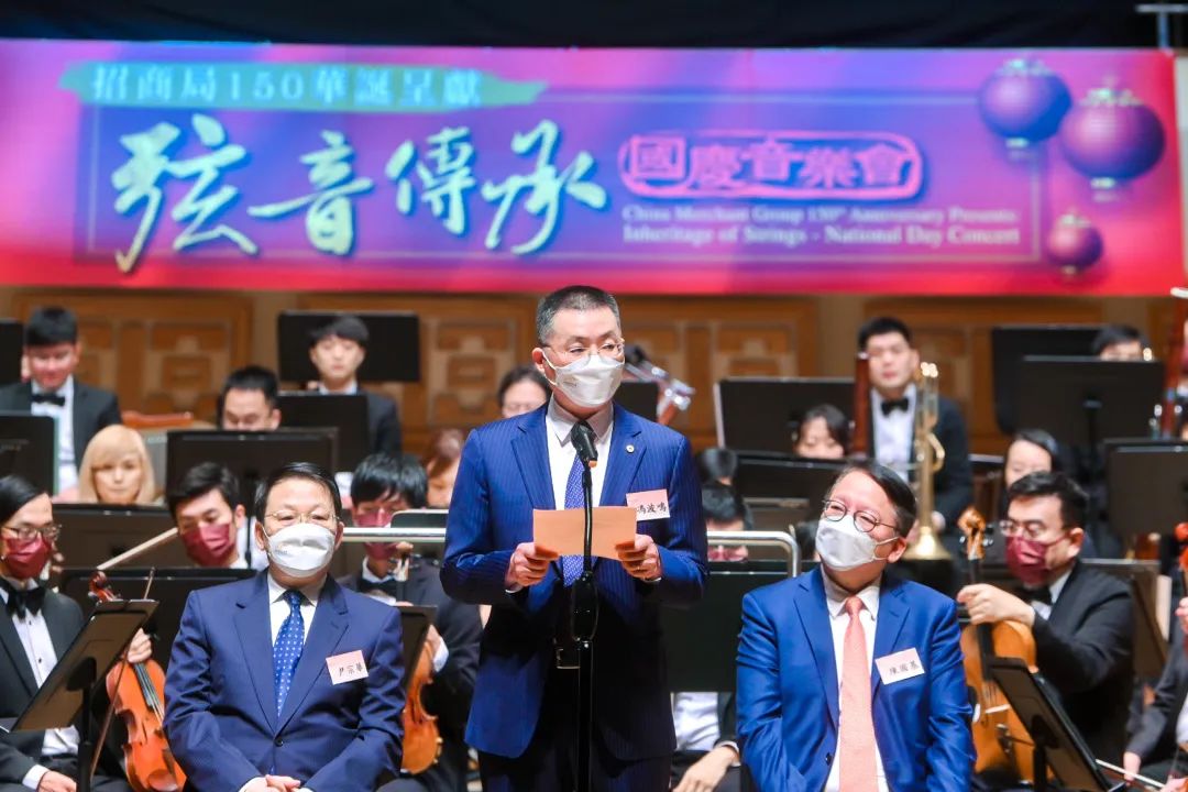陈国基在致辞中表示,很高兴获邀出席国庆音乐会,与大家一起庆祝中华人民共和国成立73周年。适逢招商局今年迎来150周年华诞,向招商局送上衷心的祝贺。他表示,国庆音乐会以“弦音传承”为题,充分体现了跨界别、跨地域、跨世代的传承和融合。成立10周年的香港弦乐团和150周年的招商局跨界别联手呈献音乐会,别具心思。香港弦乐团将香港中外文化交融的魅力带到世界舞台,切合本届特区政府致力加强与内地和海外文化艺术交流的重点方向。音乐会还邀请了基层的孩子和家庭到场免费观看,实现了跨世代传递音乐的乐趣,特区政府期望和各界群策群力,为年轻一代提供更好的教育机会和发展机遇,培育他们成为德才兼备的“一国两制”接班人。
