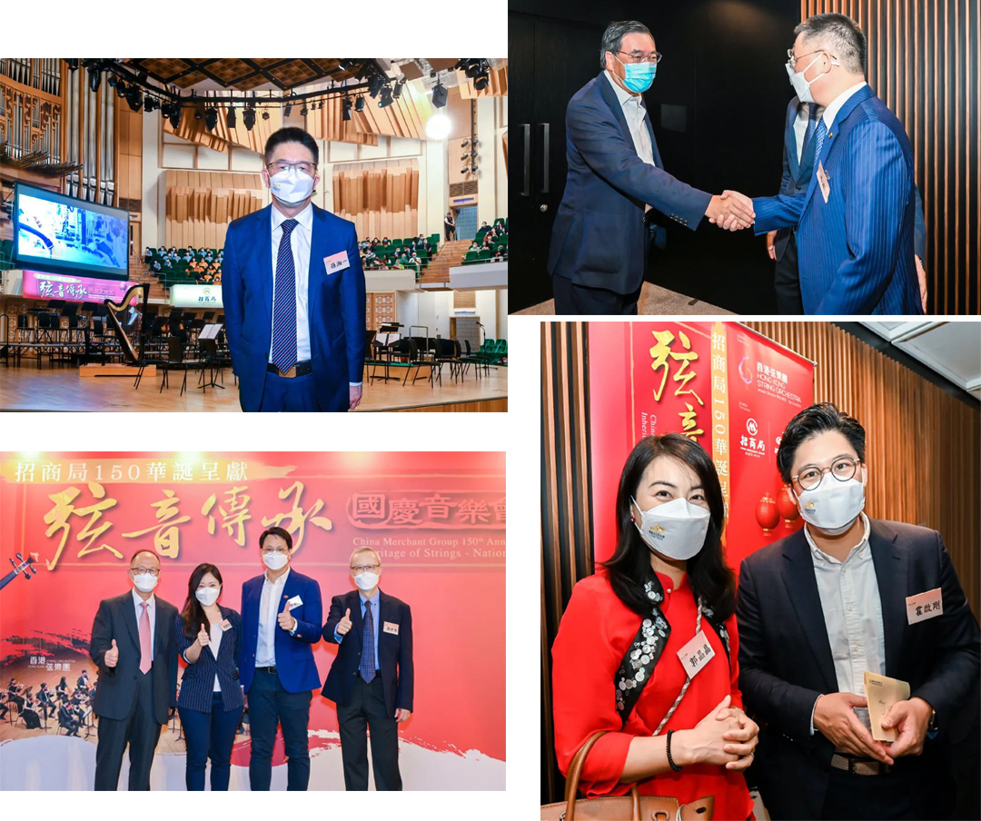 香港特区政府政务司司长陈国基现场致辞,香港中联办副主任尹宗华出席活动,招商局集团副总经理冯波鸣、香港弦乐团董事局主席陈永棋现场致辞。驻港国安公署副署长孙青野,香港立法会主席梁君彦,香港特区政府政务司副司长卓永兴、创新科技及工业局局长孙东,香港中联办经济部部长孙湘一,民建联主席李慧琼,工联会会长吴秋北,全国青联副主席、香港立法会议员霍启刚及其太太——联合国儿童基金会香港委员会大使郭晶晶,香港特区政府文化体育及旅游局副局长刘震、民政及青年事务局副局长梁宏正,香港中华总商会会长袁武,香港中企协会总裁张夏令,招商局集团外部董事钱伟伦,港区人大代表、招商局集团原副总裁李引泉,以及来自香港社会各界嘉宾、基层家庭、学生代表等应邀出席音乐会。