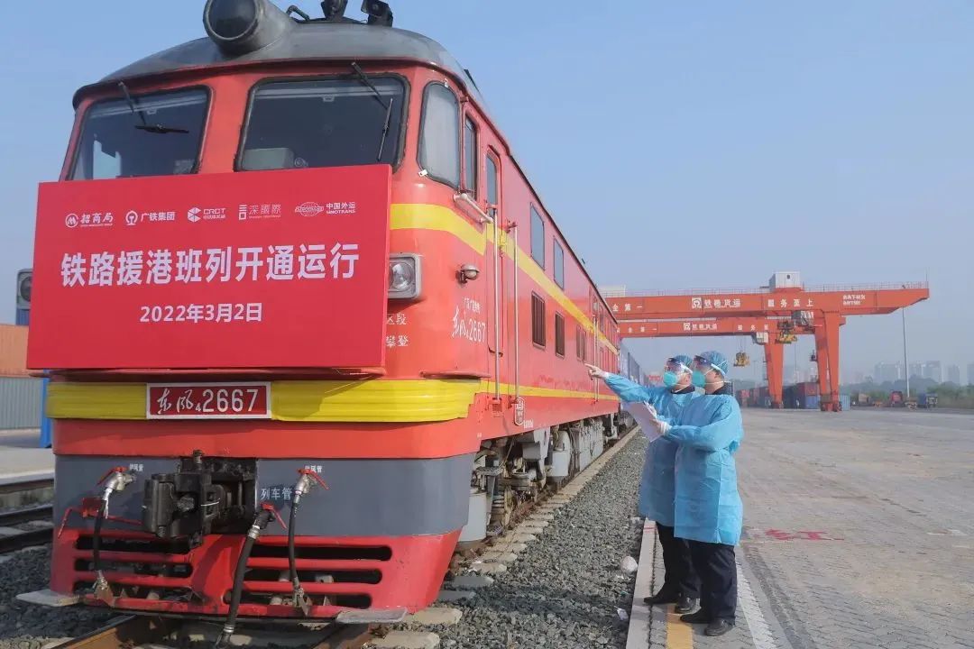 2022年3月2日,招商局旗下中国外运主导的首趟“中央援港 同心抗疫”铁路援港班列,从深圳平湖南国家物流枢纽开出