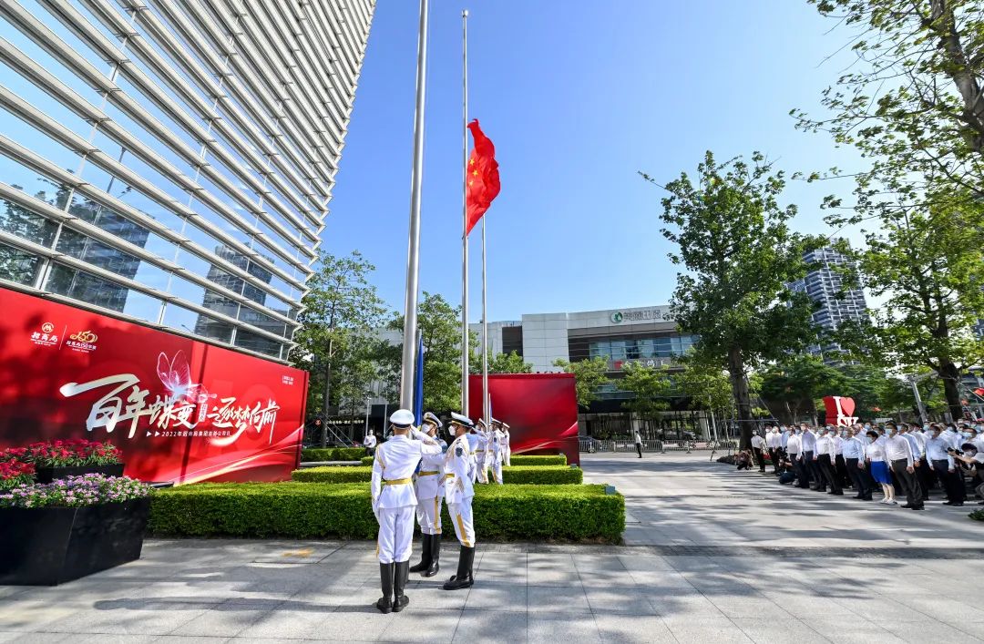 当日上午,集团2022年公司日升旗仪式在深圳招商局广场举行。伴随着激越雄壮的国歌旋律,鲜艳的五星红旗冉冉升起、风展如画。随后,招商局局旗在慷慨激昂的“招商局之歌”中升起,迎风飘扬。