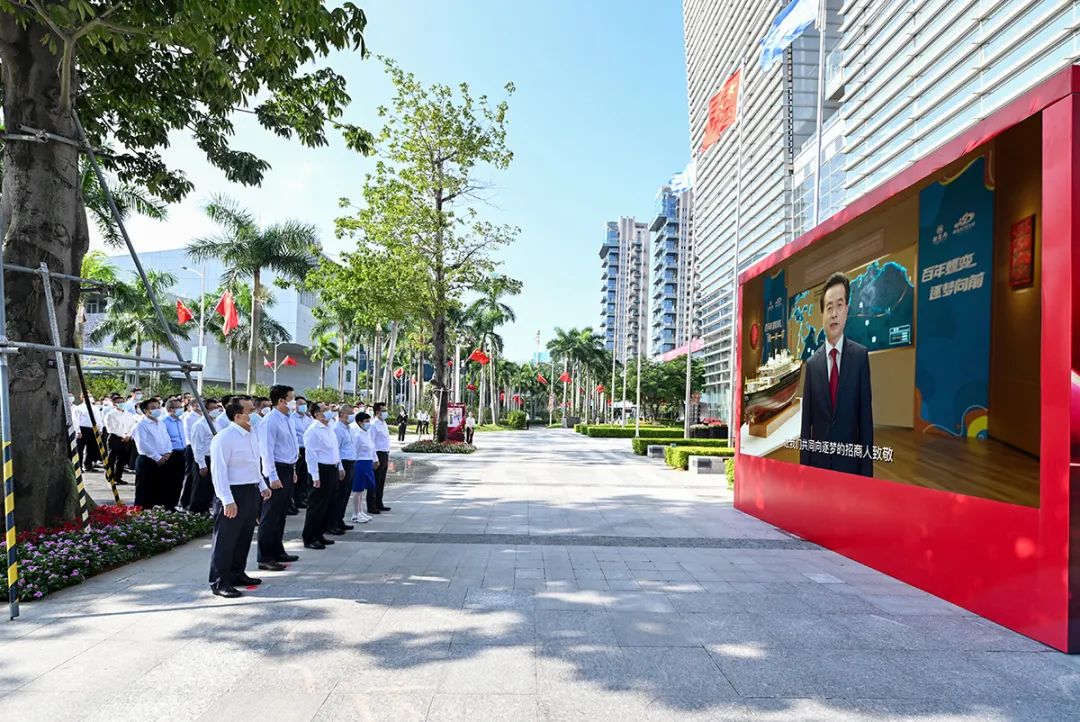 招商海南各单位热烈开展第19个公司日活动。全体员工参加升旗仪式,集中观看集团董事长缪建民公司日致辞。