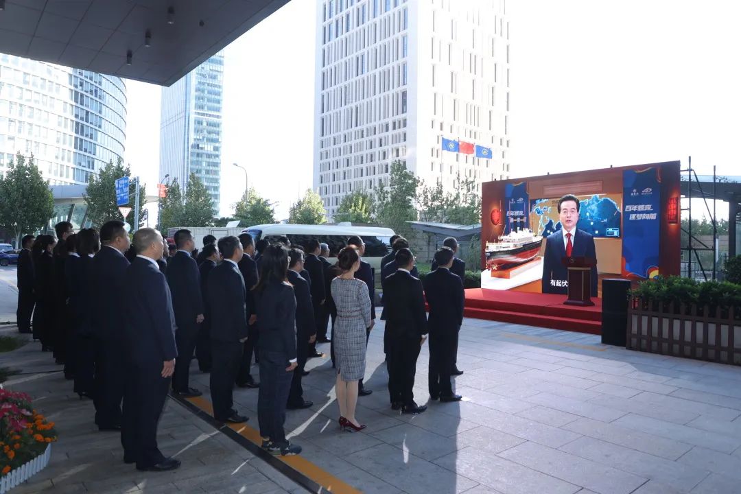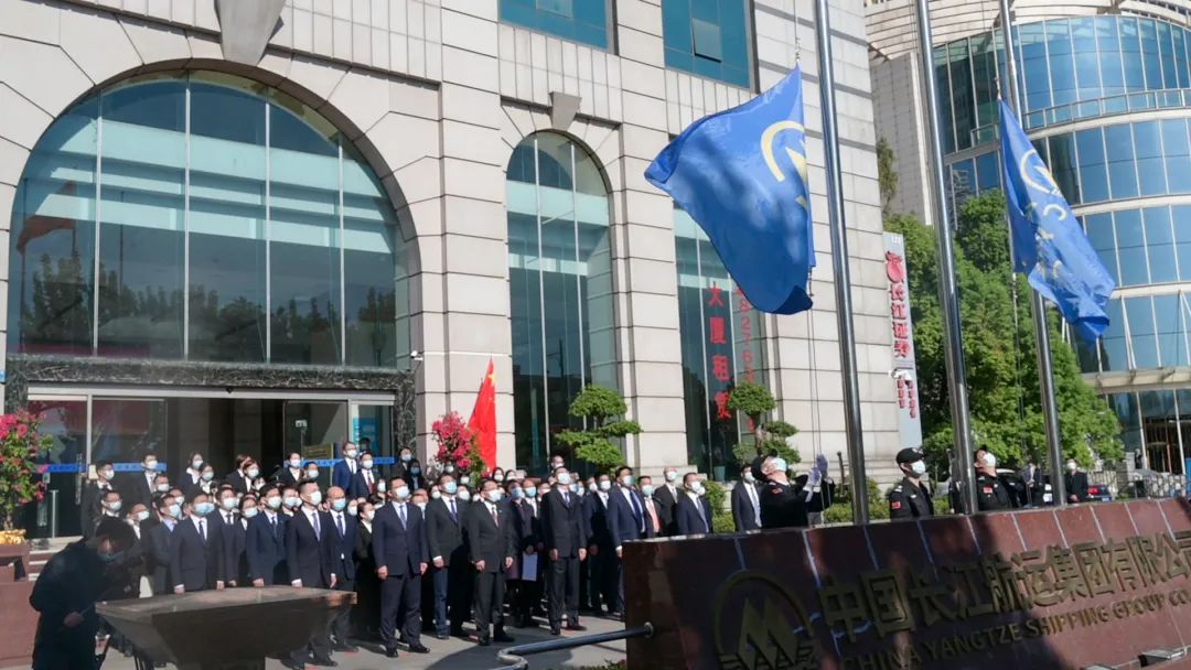 招商局集团(上海)有限公司党委组织集团在沪单位在招商局上海中心举行庄严的升旗仪式,并观看集团董事长缪建民公司日致辞。