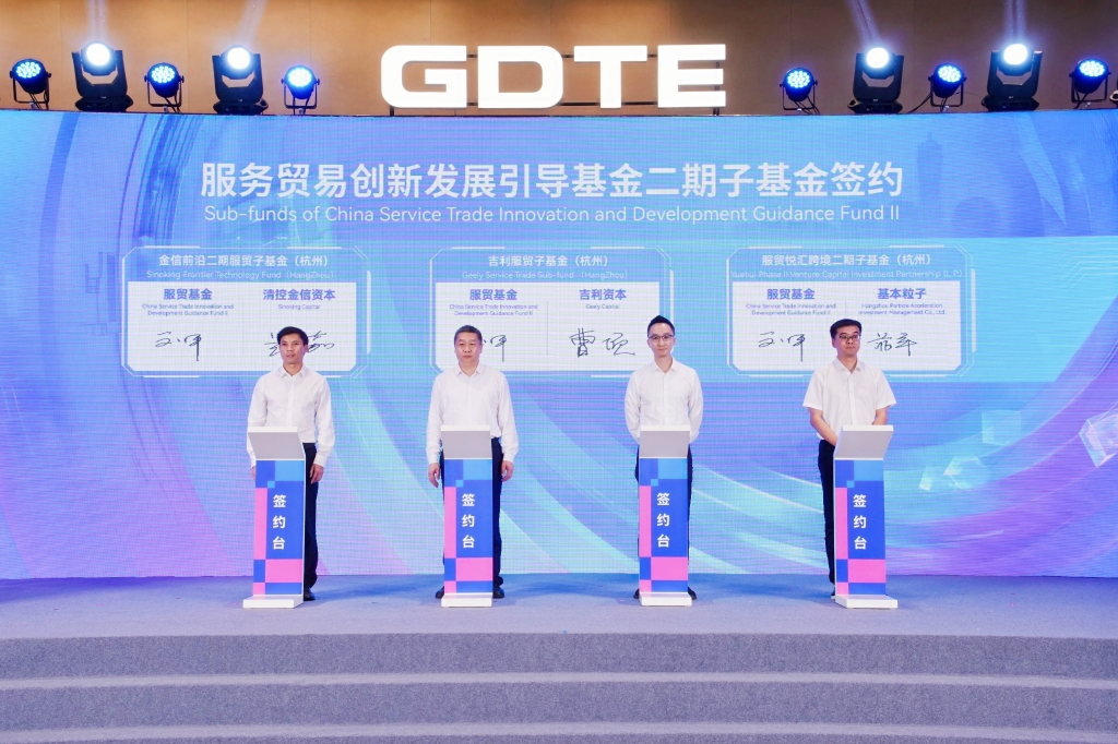9月26日,由财政部、商务部、招商局集团共同发起的服务贸易创新发展引导基金二期(简称服贸基金二期)在杭州市第四届全球数字贸易博览会上举行启动仪式。招商局集团董事长缪建民、商务部副部长盛秋平、杭州市市长姚高员、财政部经济建设司司长郭方明、商务部服贸司司长孔德军、浙江省商务厅厅长周向军、商务部财务司副司长梁昊飞等出席活动。