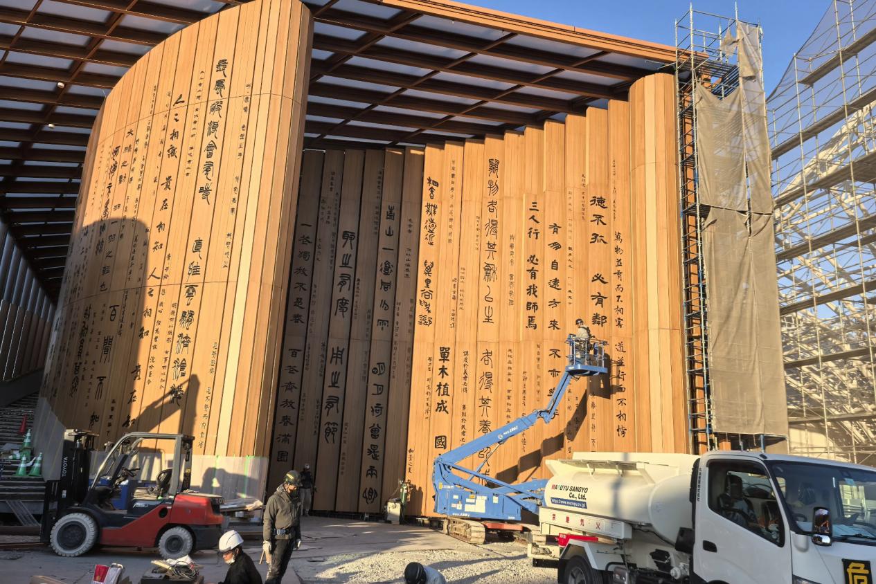时效性是此次运输的一大考验。在2025年元旦假期前夕,为保证中国馆“中华书简”的竹简板及时送达,中国外运团队到现场调度指挥,48小时紧急操作入港,并在假期期间完成了13个40尺海运货柜的清关、提货、倒运、入园配送工作,被日本当地物流公司称赞“这几乎是不可能完成的任务”。中国春节假期期间,项目团队全员坚守岗位,完成了将近10批次的货物发货,保证了货物在春节后第一时间到港清关,并按计划扎实有序推进中国馆建设。中国馆从生产到吊装封顶,整体用时仅2个多月,以物流实力彰显了“中国速度”。