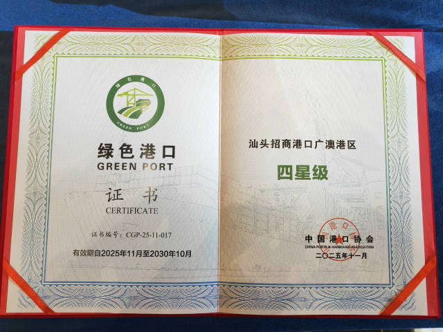 11月28日,在2025绿色与安全港口大会上,汕头招商港口广澳港区凭借在绿色低碳发展领域的扎实成效,成功获评“四星级”绿色港口,标志着该港区在践行国家“双碳”战略、推动港口绿色转型方面迈出关键一步。