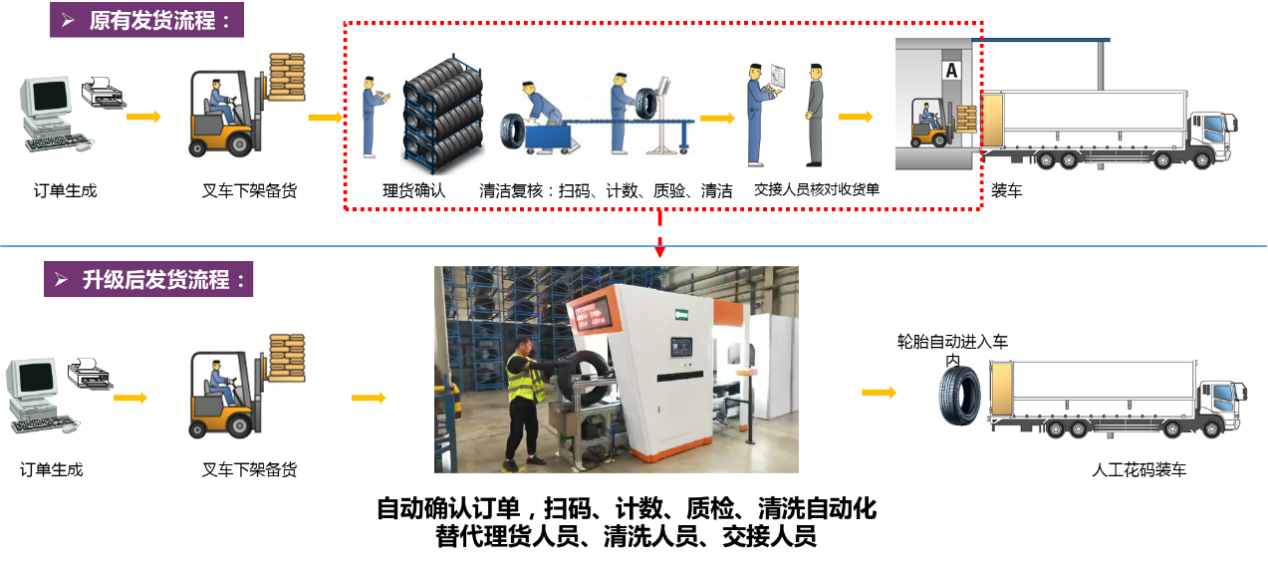 2022年1月,轮胎数智化解决方案在外运东北沈阳物流中心正式上线,完成了包括视觉识别智能化分拣及轮胎自动清洗输送线、仓储作业人机协同自动化、轮胎控制塔数据可视化及多维度指标监控、预警及与等模块的研发及试点落地,初步建设形成了面向轮胎行业客户的供应链整体解决方案,在试点区域的轮胎出库总体效率提升超过40%,每条分拣流水线节约了50%的操作人员、节约80%的理货操作空间,实现分拣理货环节处理能力的大幅提升,单流水线每小时分拣轮胎数达960条。