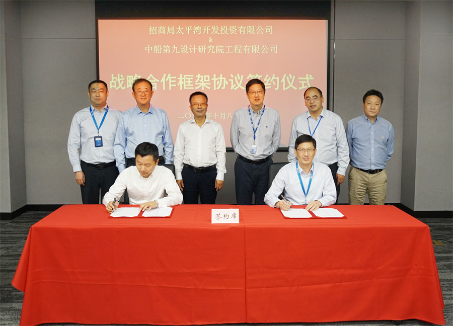 10月8日,招商局太平湾开发投资有限公司与中船第九设计研究院工程有限公司战略合作框架协议签约仪式在上海中船九院举行。招商局太平湾总经理胡勇、中船九院总经理孙伟军出席活动并致辞。中船九院副总经理王琦、招商局太平湾高级顾问董延洪参加。