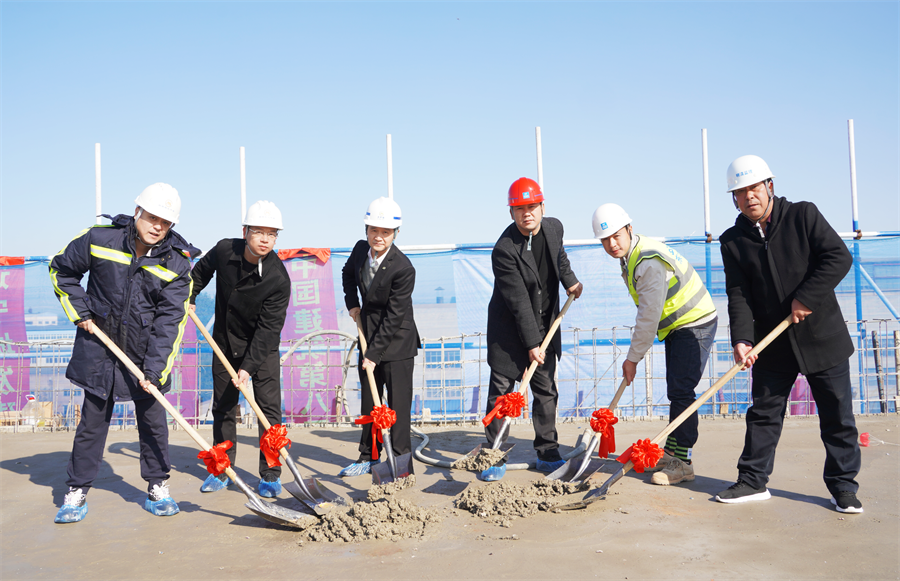 出席仪式的领导及项目负责人共同为厂区综合楼浇筑混凝土。
