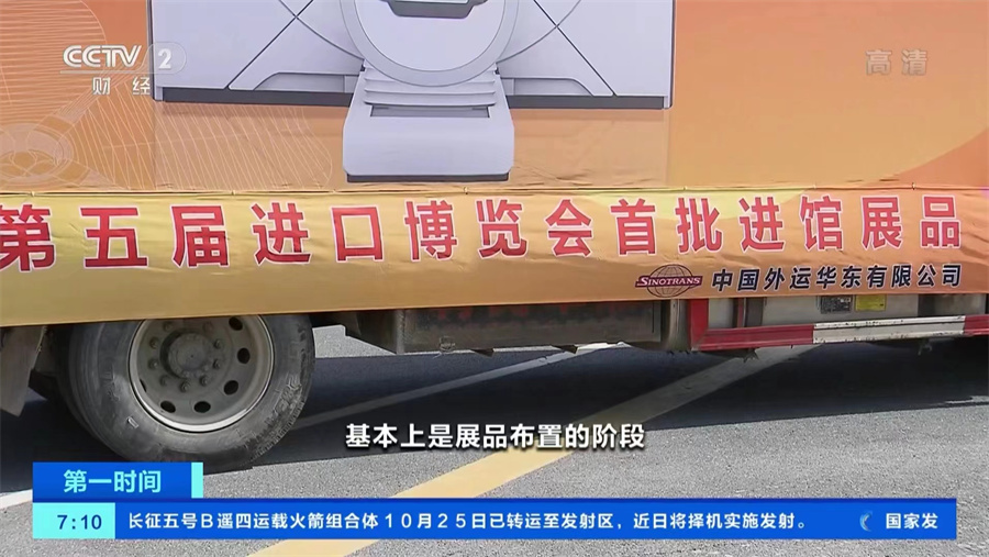 10月24日上午,在国家会展中心(上海)北广场,项目团队调配运输展品的车辆,同其他物流供应商一起满载着第五届进博会的首批展品正式进场,这也标志着第五届进博会正式进入布展阶段。项目团队首批安排进场的展品包括了西门子医疗系统有限公司带来的全球首款光子计数CT NAEOTOM Alpha等本届进博会重量级展品。随着国家会展中心(上海)进入繁忙的布展期,预计届时将会有近三十票左右的国际展品、两百票左右的国内展品通过中国外运运抵展台。