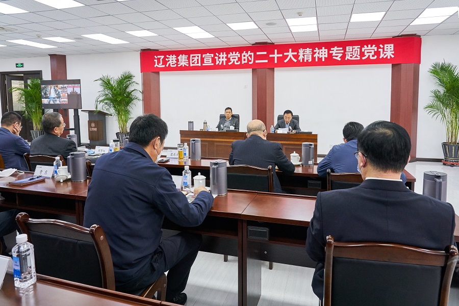 近日,辽港集团以“主会场+视频分会场+云学习平台在线直播”的方式,召开党建工作例会宣讲党的二十大精神。辽港集团党委书记、首席执行官王志贤讲授专题党课,党委副书记葛乐夫主持会议。公司领导班子成员在主会场参会。